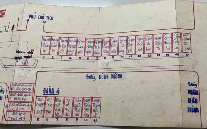 Sơ đồ ghi rõ cách bố trí từng đoàn: